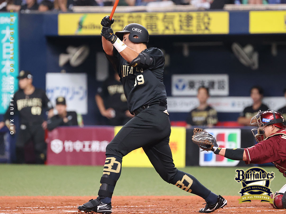 5番 紅林 中犠飛 満塁 フルカウントからセンターへ犠牲フライ 1,2塁 オ1-1楽 2アウト ![]() 1