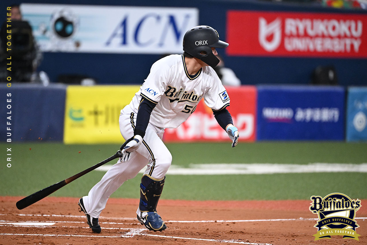 投手 菅井 7番 紅林 中飛 高めのストレートを打つもセンターフライ 1アウト |