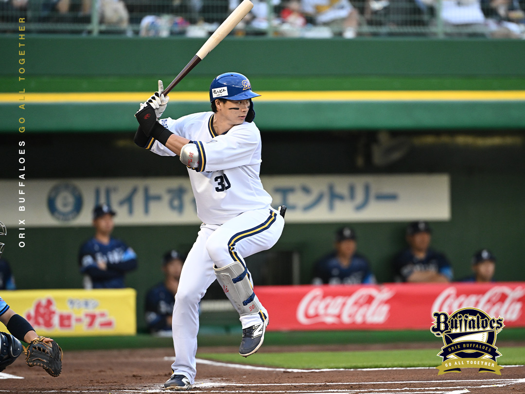 3番 紅林 左安 外角低めのスライダーをレフトへ打ってヒット 1塁 |