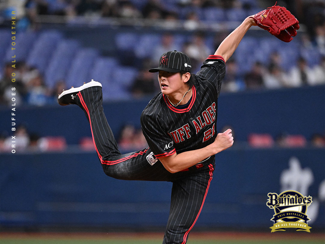 投手 宮城 5番 外崎 空三振 内角のストレートを空振り三振 1アウト |