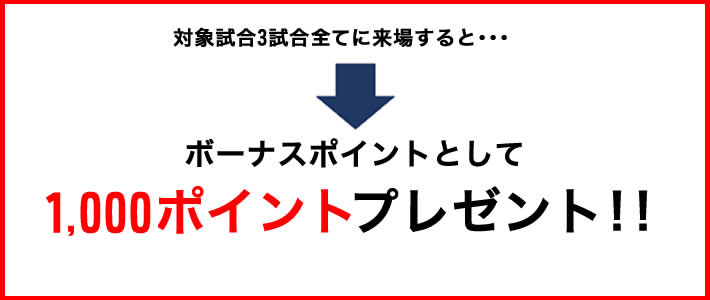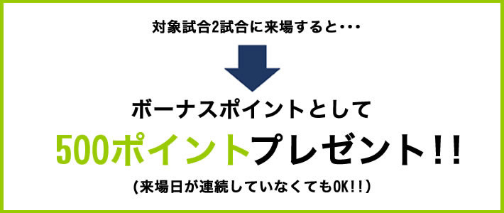 上記「対象試合」で来場回数に応じ、来場ポイントボーナスキャンペーンを実施いたします。