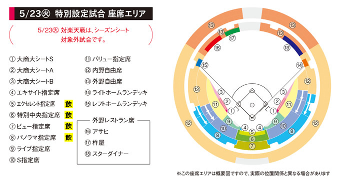 5月23日(火)の楽天戦は、今シーズン1試合限定の特別設定試合(シーズンシート対象外試合)として開催いたします。