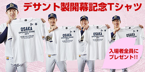 また当日は、入場者全員に「デサント製開幕記念Tシャツ」をプレゼント! “OSAKA OPENING GAME 2017”を胸に、選手たちと一緒に戦いましょう!