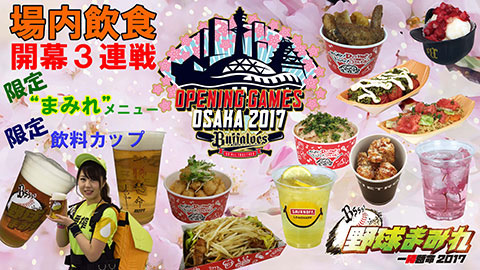 また、場内売店でも開幕3連戦限定メニューとして、『開幕×満開×まみれ!メニュー』を下記場内売店にて販売いたします。2017年シーズンもプロ野球にまみれよう!
