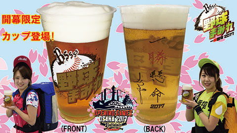 京セラドーム大阪の球場内飲食売店等で販売する「生ビールLサイズ(プレミアム系ビール除く)」、「ソフトドリンク各種」のカップを、「野球まみれ 一勝懸命2017カップ」でご提供いたします。