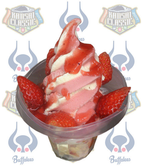 | コメント | フローズンいちごとストロベリーソースで近鉄カラーをイメージしました♪ぜひ、食べて下さい♪ | コメント | フローズンキウイとキウイソースで南海カラーをイメージしました♪ぜひ、食べて下さい♪ |