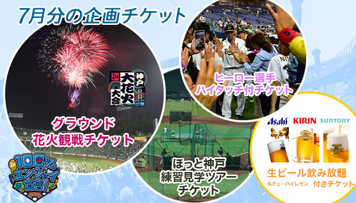 試合終了後にスペシャルな演出とともに花火が打ち上がる大花火ショーを、グラウンドから観覧できる「大花火グラウンド観覧チケット」や、恒例の「ほっと神戸練習見学ツアーチケット」、「生ビール&チューハイレモン飲み放題付きチケット」なども発売いたします。