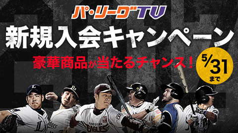 パ・リーグTVではより多くのファンの皆さまにパ・リーグTVの魅力をお伝えしていくために、5月31日までに新規入会された方を対象にした豪華商品が当たるキャンペーンを実施いたします。