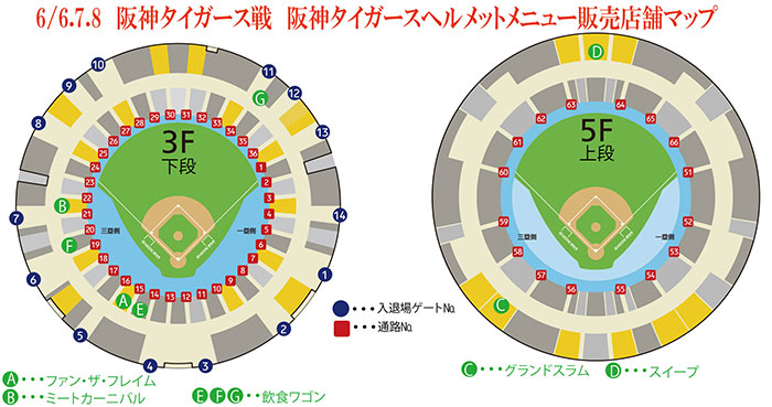 | 販売場所 店舗名 | 場内3階(下段) 場内5階(上段) |