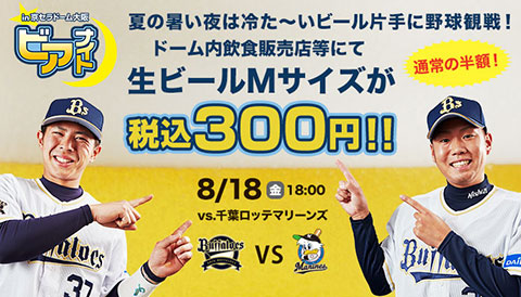 8月18日(金)対千葉ロッテ戦にて、「ビアナイト」を開催いたします!