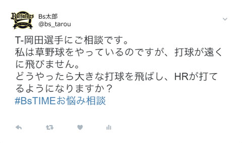 Twitterからあなたのお悩みをハッシュタグ「#bstimeお悩み相談」と「回答希望選手」を記載し、投稿してください。