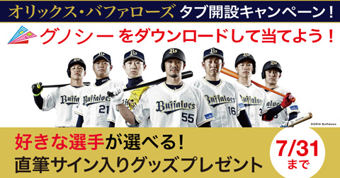 タブ開設を記念して、バファローズ選手の直筆サイングッズやメッセージ動画が当たるキャンペーンを7月31日(月)まで開催中です。