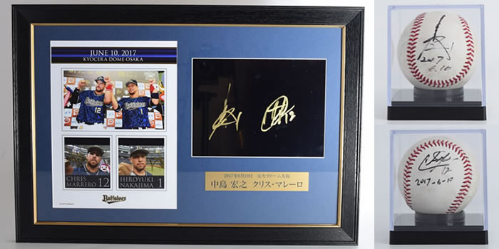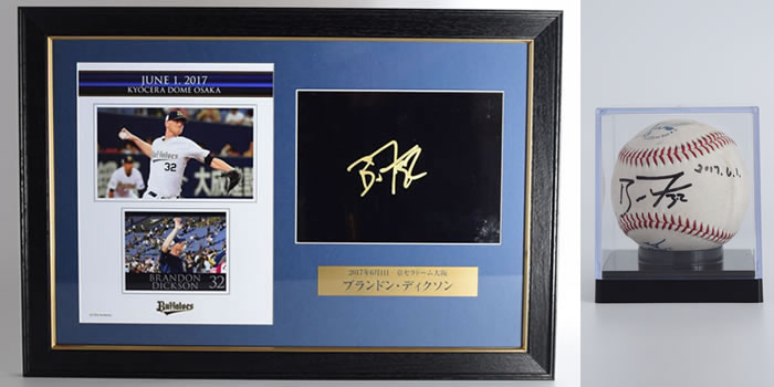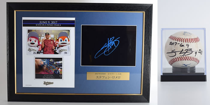 バファローズでは、ホームゲーム勝利時のヒーローインタビュー後、ヒーロー選手がカメラレンズ越しにサインをしています。その直筆サイン入りプレートを豪華に額装し、オークションにて販売いたします!さらに今シーズンは、当日使用した試合球に直筆サインを入れたボールもセットとなっております!!
