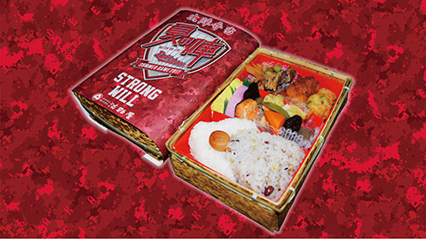 ![]() 出陣弁当 | ¥1,000 | お馴染みの竹籠容器を使用し、白米と十穀米のおにぎりに、煮物・焼鮭・牛肉煮等の暑い夏にも食べやすいおかずをお盛り込んだお弁当です。 夏の陣を元気に盛り上げていきましょう♪ | 淡路屋 | 3階三塁側内野 15通路横 |