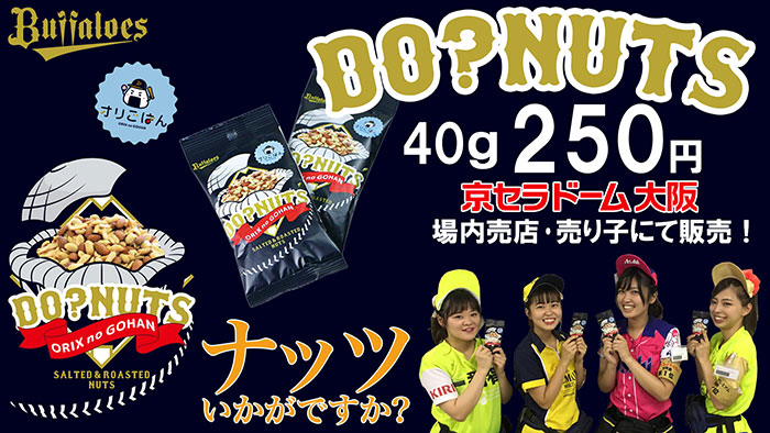 Bs選手もカラダ作りに食べている話題のオリナッツ!アーモンドと落花生をオリーブオイル&発酵バターでおいしくアレンジしました!”オリごはん”シリーズのうれしいおつまみ「DO?NUTS」が新発売です!