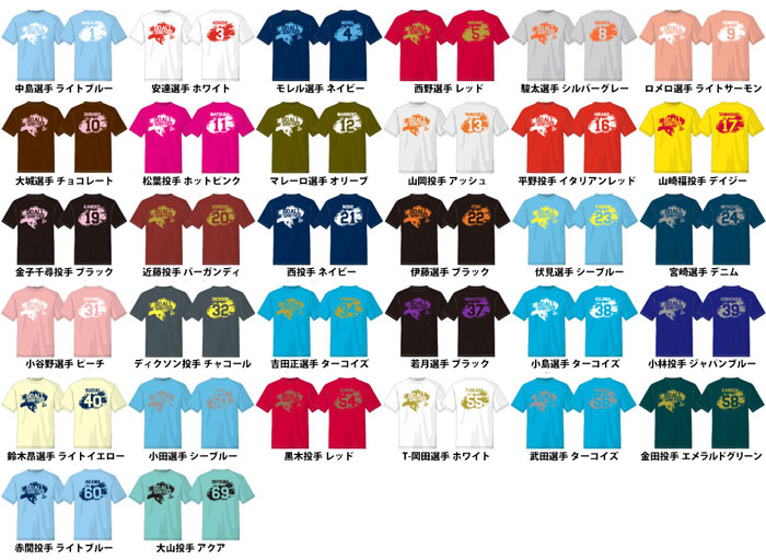 8月19日(土)・20日(日)の「Bs選手会プロデュースデー2017」開催に合わせ、今年も「Bs選手会プロデュースデーTシャツ」が登場!!全32選手それぞれが、Tシャツのボディカラーとプリントカラーを選びました。さらに今年はイベントコンセプトの「野球まみれ」にちなみ、フェイスタオルも発売いたします!!
