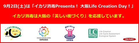 イカリ消毒は来年度、創業60周年を迎えます。これもひとえに皆様のご支援のお陰であり、誠に感謝いたしております。今後も大阪より発信し、未来の地球環境を守るべく、大阪府と連携し大阪版食の安全安心認証制度のこころちゃんの推進や男女がいきいきと働くことのできる企業づくり、万博誘致の応援等、大阪府の活性化に尽力いたします。