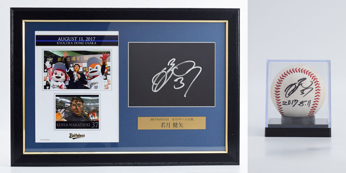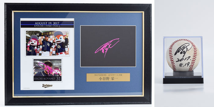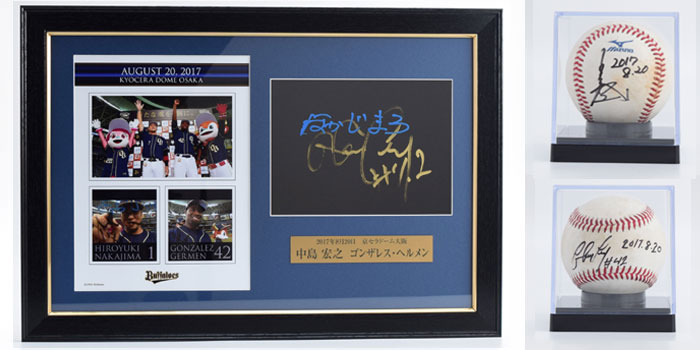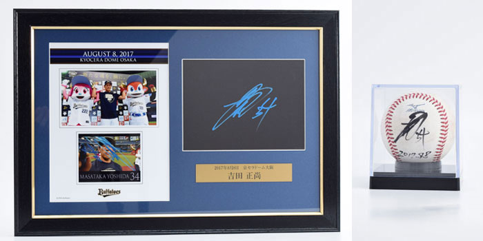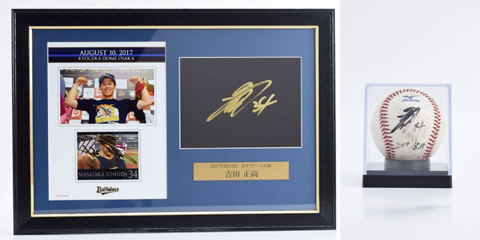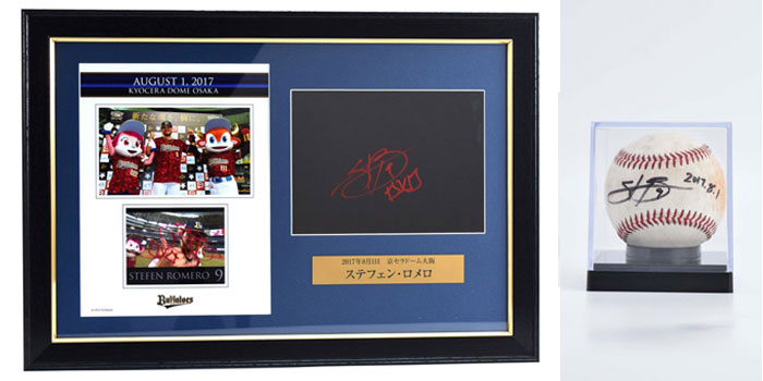 バファローズでは、ホームゲーム勝利時のヒーローインタビュー後、ヒーロー選手がカメラレンズ越しにサインをしています。その直筆サイン入りプレートを豪華に額装し、オークションにて販売いたします!さらに今シーズンは、当日使用した試合球に直筆サインを入れたボールもセットとなっております!!第5回は、8月に勝利しました7試合分を出品いたします。ぜひご参加ください!