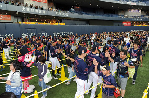 京セラドーム大阪2階「BsSQUARE」、3階4番ゲート内ファンクラブ受付および11番ゲート横ファンクラブ受付で、来場ポイント付与時に参加券を配布します。参加をご希望の方は、当日の観戦チケットとBsCLUB会員証をご提示ください。