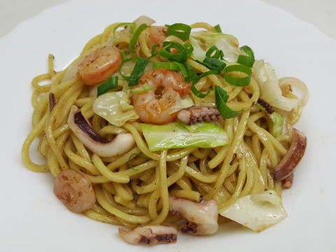 | エビやイカなどがたっぷり入った、当店自慢のあっさり味の海鮮塩焼そばが再登場します! | |||