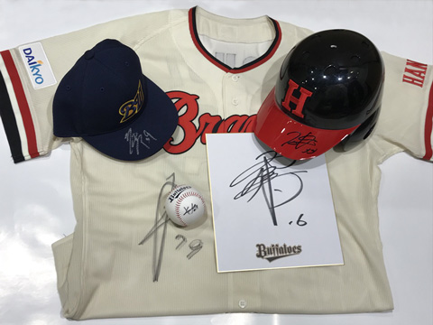 ”ユニフォーム”・”ヘルメット”・”帽子”・“サイン色紙”・“サインボール”などご用意しております!