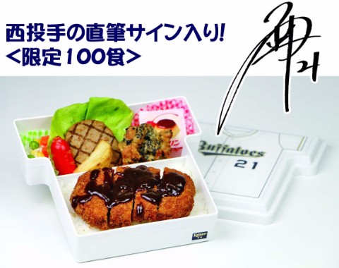 お弁当箱に西投手の直筆サインが入った「Bsユニフォーム弁当」を、特設ブースにて数量限定販売いたします!