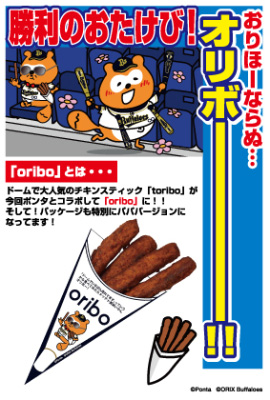 ![]() oribo(オリボー) | なにわのきっちん スタジアムバーbyLEOC ワゴン(三塁側通路14横) | 500円 | ポンタと人気の「toribo」がコラボ!