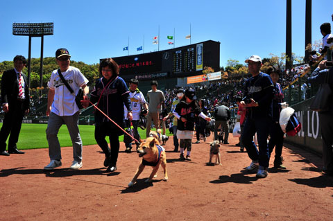 ※従来は球場内にはペット持ち込み禁止となっておりますが、4月15日(日)に限り「わんにゃんチケット」を購入された方のみがペットと一緒に観戦できます。