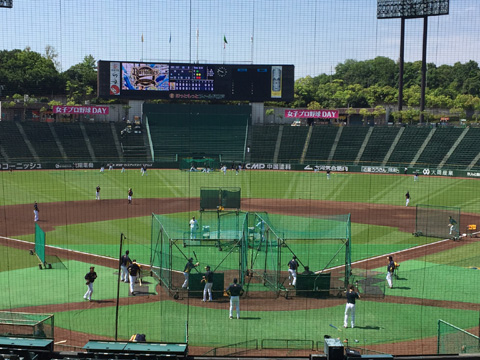 ほっともっとフィールド神戸の「ネット裏指定席エリア」から、試合前練習を見学できます。
