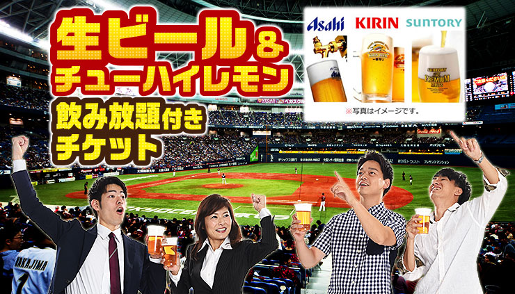 当日は対象席種の一部が「飲み放題付きシート」となり、試合開始30分前から3時間制で飲み放題です!!