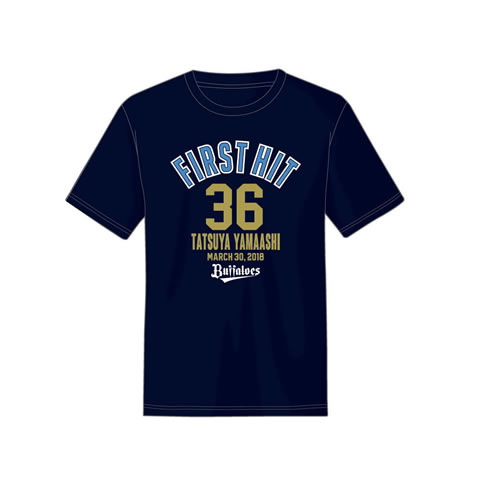 3月30日(金)福岡ソフトバンク戦にてプロ初安打を記録した山足達也選手のメモリアルTシャツ(初安打記念日入り)をオンラインショップにて先行販売!! 直営店「Bs SHOP」・「B-WAVE」では4月14日(土)より販売いたします。