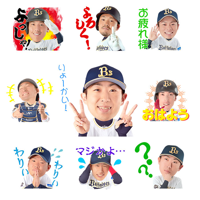 昨年販売し好評をいただいたバファローブル&ベルのLINEスタンプに続き、今度はバファローズの選手達がスタンプになって登場!!
