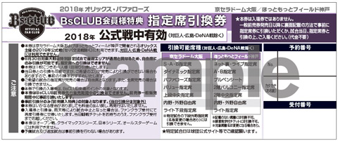 『2018年度BsCLUB会員証』+『ご利用試合日の一般前売・当日価格またはファンクラブ前売・当日価格で購入した内野指定席券』