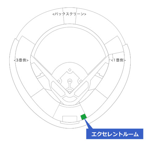 一塁寄りのネット裏後方に位置する「エクセレントルーム」。落ち着いたプライベート空間のお部屋からの観戦だけでなく、球場が一望できる専用のバルコニーシートでもご観戦いただけます。