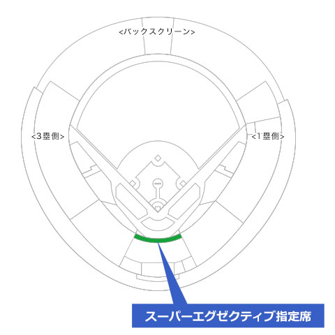 ネット裏最前列、座席の前にテーブルが付いている「スーパーエグゼクティブ指定席」。プレーのすべてが視界に収まる迫力満点の特等席です。