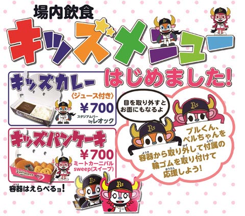 京セラドーム大阪での試合日に、下記店舗にて、キッズメニューが登場!