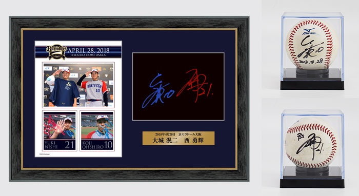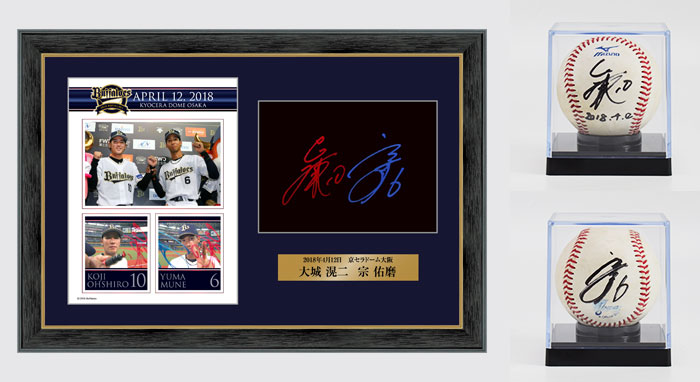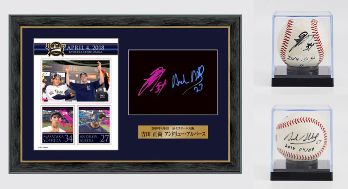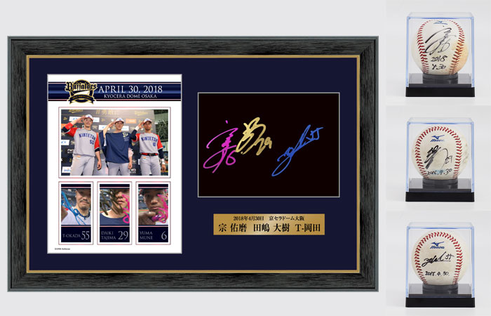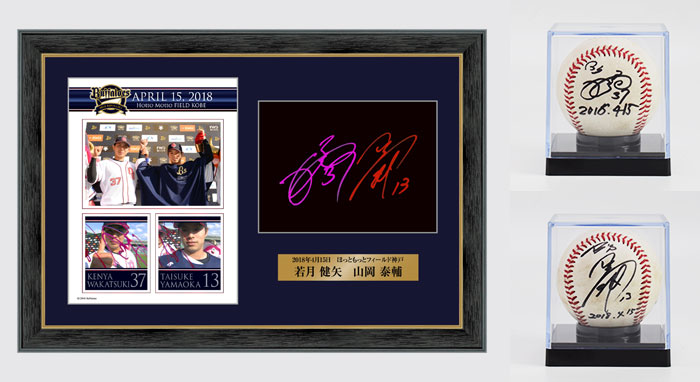 オリックス・バファローズではホームゲーム勝利時、ヒーローとなった選手がプレートにサインをしています。そのプレートを豪華に額装し、さらにヒーロー選手の直筆サインを入れた使用球をセットにして、オークション販売いたします。