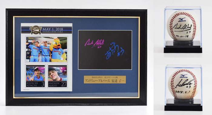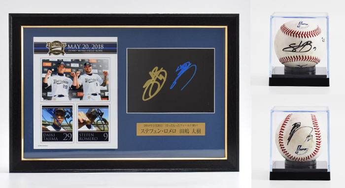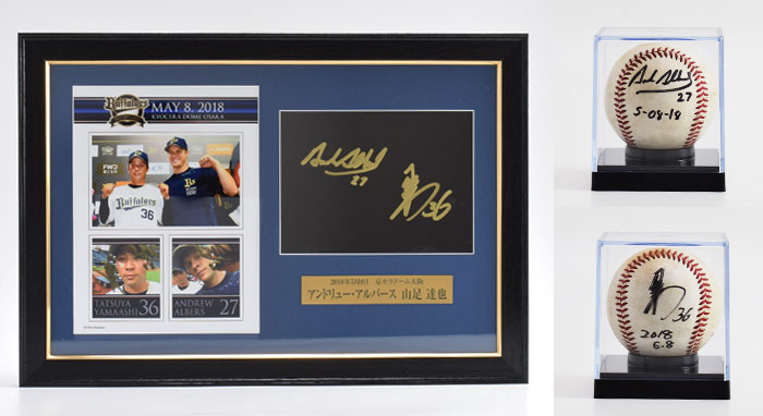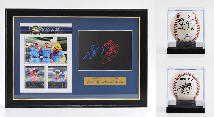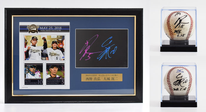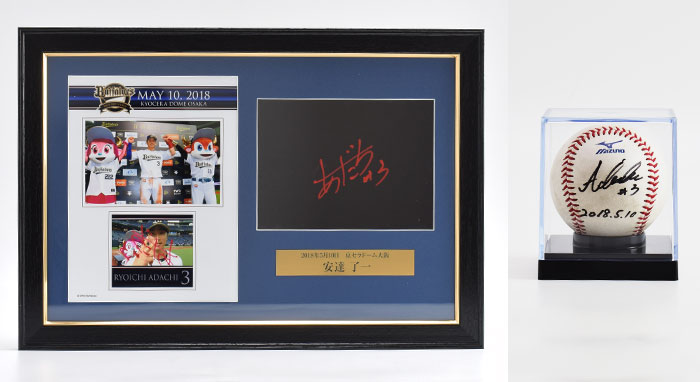 オリックス・バファローズではホームゲーム勝利時、ヒーローとなった選手がプレートにサインをしています。そのプレートを豪華に額装し、さらにヒーロー選手の直筆サインを入れた使用球をセットにして、オークション販売いたします。