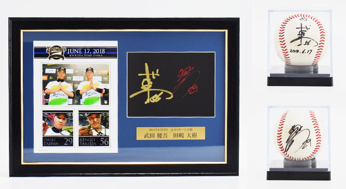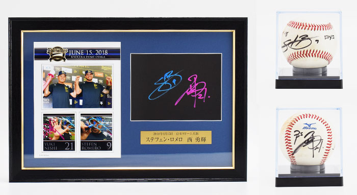 オリックス・バファローズではホームゲーム勝利時、ヒーローとなった選手がプレートにサインをしています。そのプレートを豪華に額装し、さらにヒーロー選手の直筆サインを入れた使用球をセットにして、オークション販売いたします。