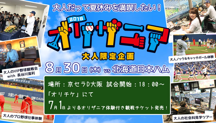 8月30日(木)北海道日本ハムファイターズ戦で開催される、大人の夏休み「オリザニア2018」の「大人のプロ野球仕事体験付観戦チケット」について、既に完売している一部イベントの追加販売を実施することとなりました。