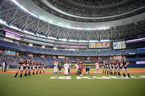 ベンチ前にて、BsGirlsと一緒に選手を守備位置に送り出す花道を体験いただけます。