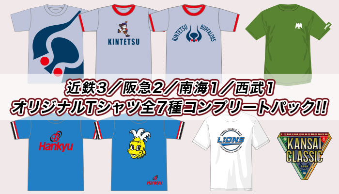 「欲しかったけど観戦できなかった」など、入手を逃した方にチャンスです。復刻デザインの近鉄・阪急・南海・西武の全7種のTシャツデザインが一挙に揃います!