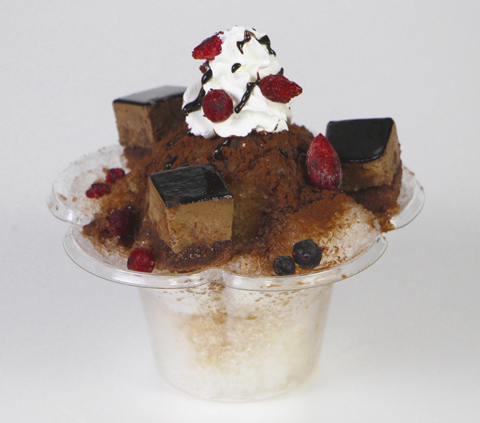 | 商品紹介 | 『アンドリューのチョコシェイブアイス』 暑い夏でも食べたくなる大好きなチョコをふんだんに使ったシェイブアイス(かき氷)。トッピングのチョコレートケーキもほおばりながら、冷たさと甘さのハーモニーをお楽しみください! |