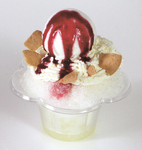 | 商品紹介 | 『ロメロのチーズケーキシェイブアイス』 レモン味のシェイブアイス(かき氷)の上に、クリームチーズベースのチーズクリーム、さらにチーズケーキアイスをトッピング♪フランボワーズソースが鮮やかな、冷えっ冷えっの三重構造は、まさにロメロスペシャルな一品です。 |