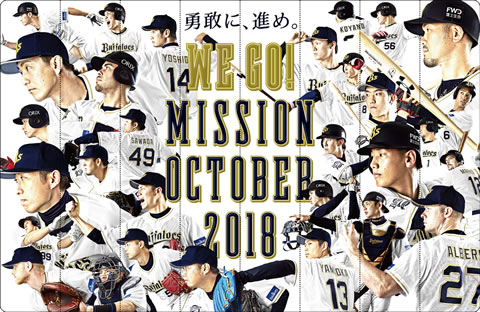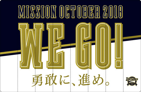 オリックス・バファローズでは、クライマックスシリーズ進出に向けてチームとファンがひとつになり、勇敢に戦うべく、"WE GO!『MISSION OCTOBER 2018』~勇敢に、進め。~"を発動し、その第1弾として、9月1日(土)、2日(日)埼玉西武ライオンズ戦にて、下記のとおり「MISSION OCTOBER 2018オリジナルハリセン」付チケットを発売することとなりましたので、お知らせいたします。