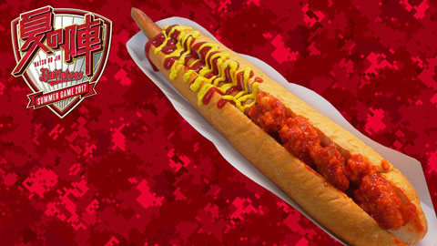 | 販売店舗 | 場内3階(下段席)3塁側内野コンコース通路15横「ファン・ザ・フレイム」 場内3階(下段席)3塁側内野コンコース通路21横「ミートカーニバル」 場内5階(上段席)3塁側内野コンコース 通路57付近「グランドスラム」  |