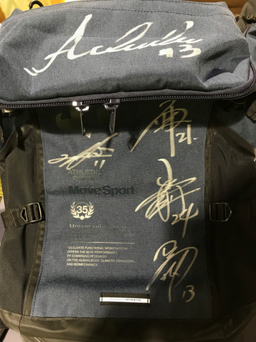 (2)直筆サイン入りお宝ジュニアリュック(宗選手・伏見選手・塚原投手・園部選手・齋藤投手、吉田雄選手バージョン)