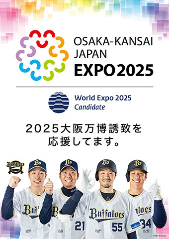 オリックス・バファローズは、2025大阪万博誘致を応援しています。