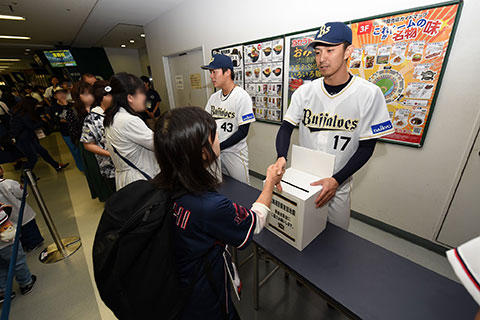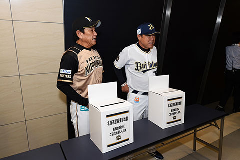オリックス・バファローズでは、北海道日本ハムファイターズご賛同のもと、両チームで北海道胆振東部地震災害義援金の募金活動を行いました。皆さまのご協力、誠にありがとうございました。被害に遭われた皆さまには、心よりお見舞い申し上げますとともに、一日も早い復興を心からお祈り申し上げます。尚、皆さまからお預かりした募金は、被災地への義援金として寄付いたします。