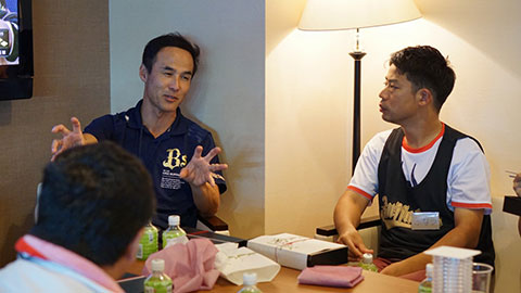 球団オフィシャルカメラマンのレクチャー後は、山本由伸投手が登場!